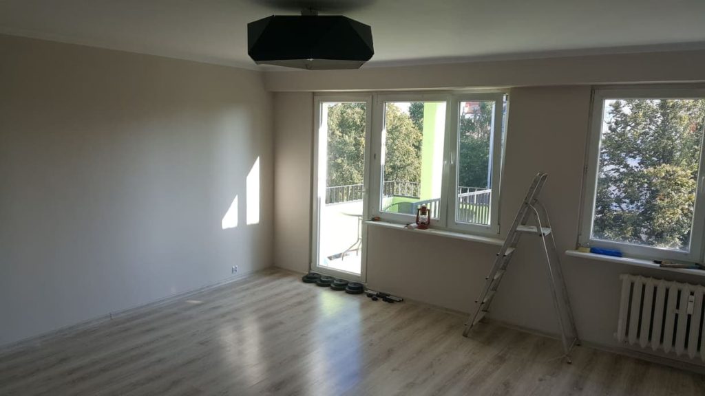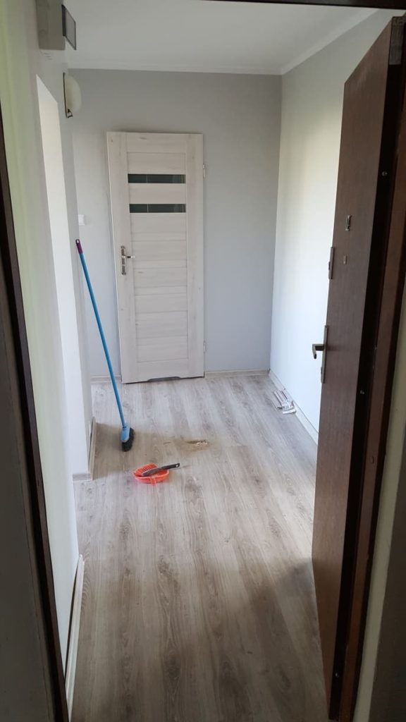 Remont mieszkania Olsztyn Remont mieszkania w budynku wielorodzinnym. Zakres prac: Zerwanie starych podłóg, położenie paneli, malowanie ścian, wymiana gniazdek i włączników, wymiana drzwi, wymiana sanitariatów, montaż mebli.