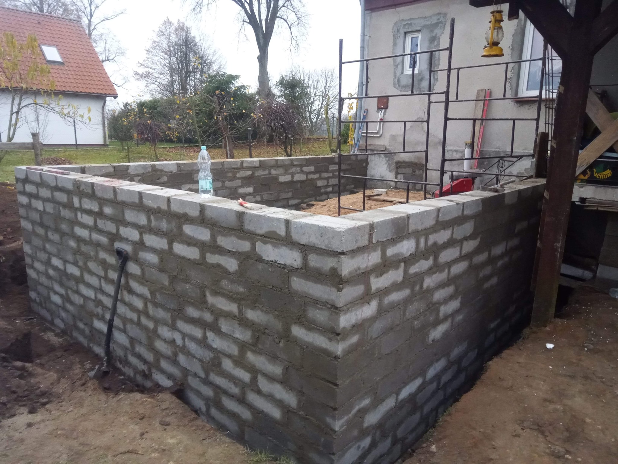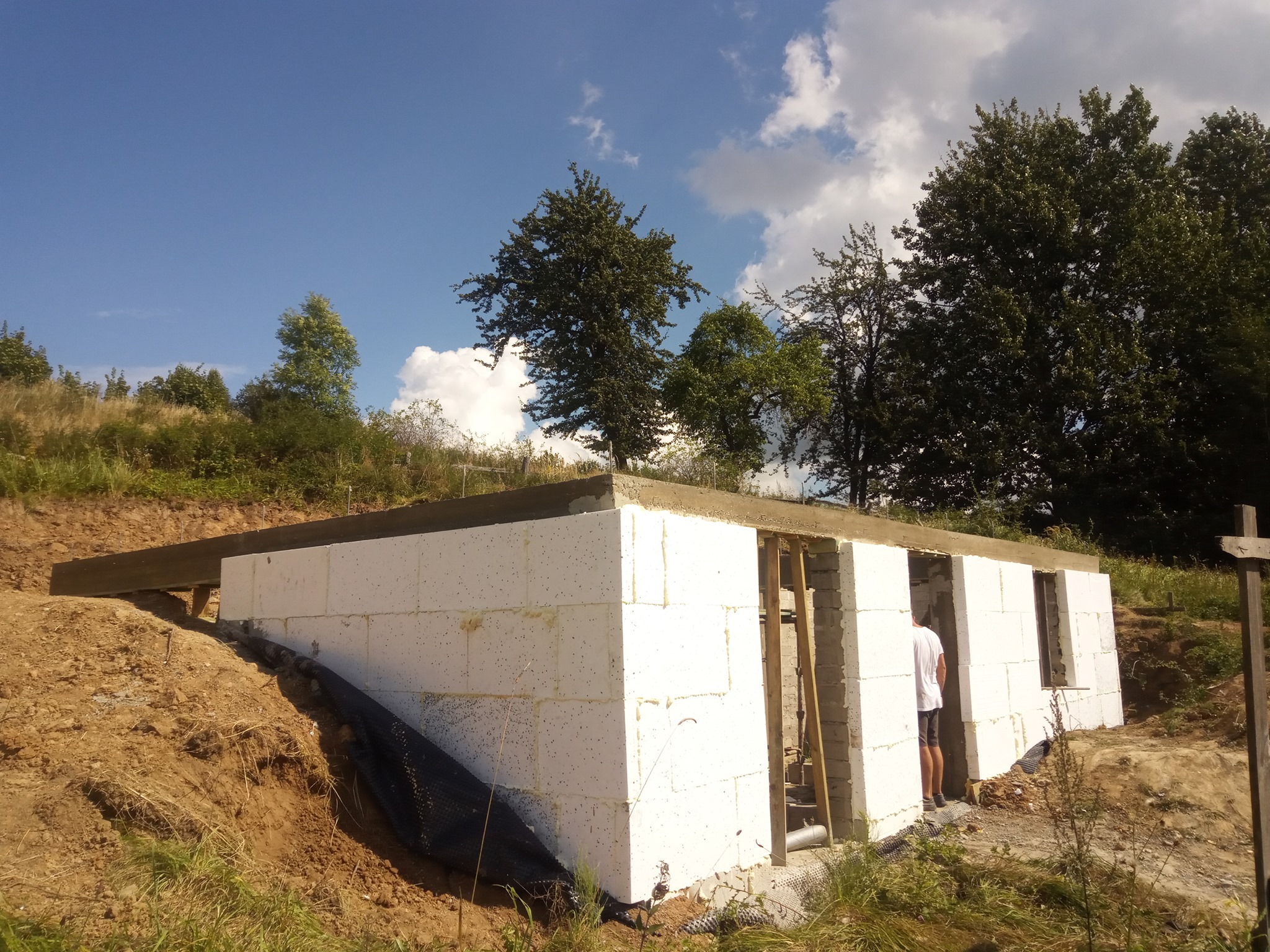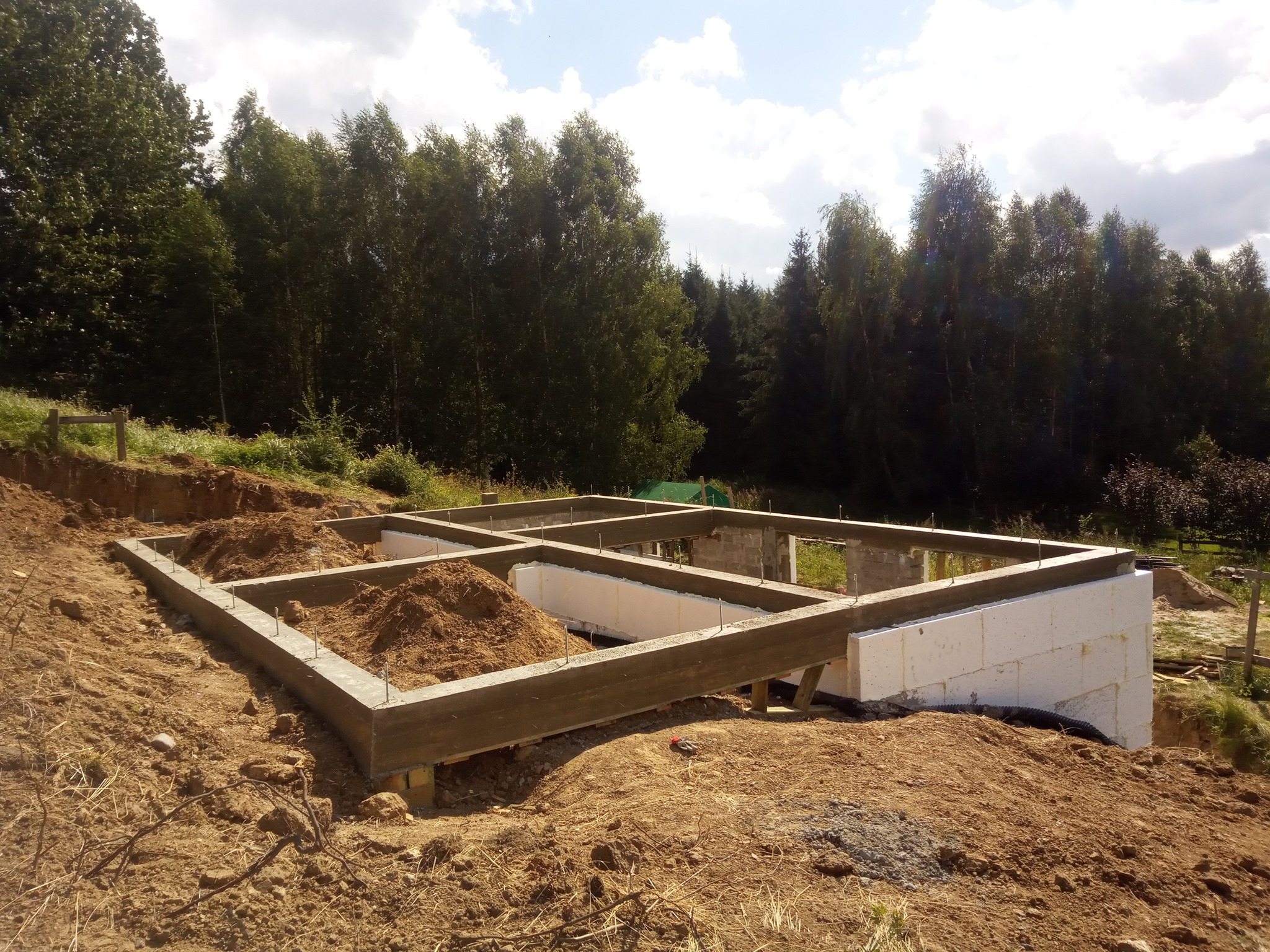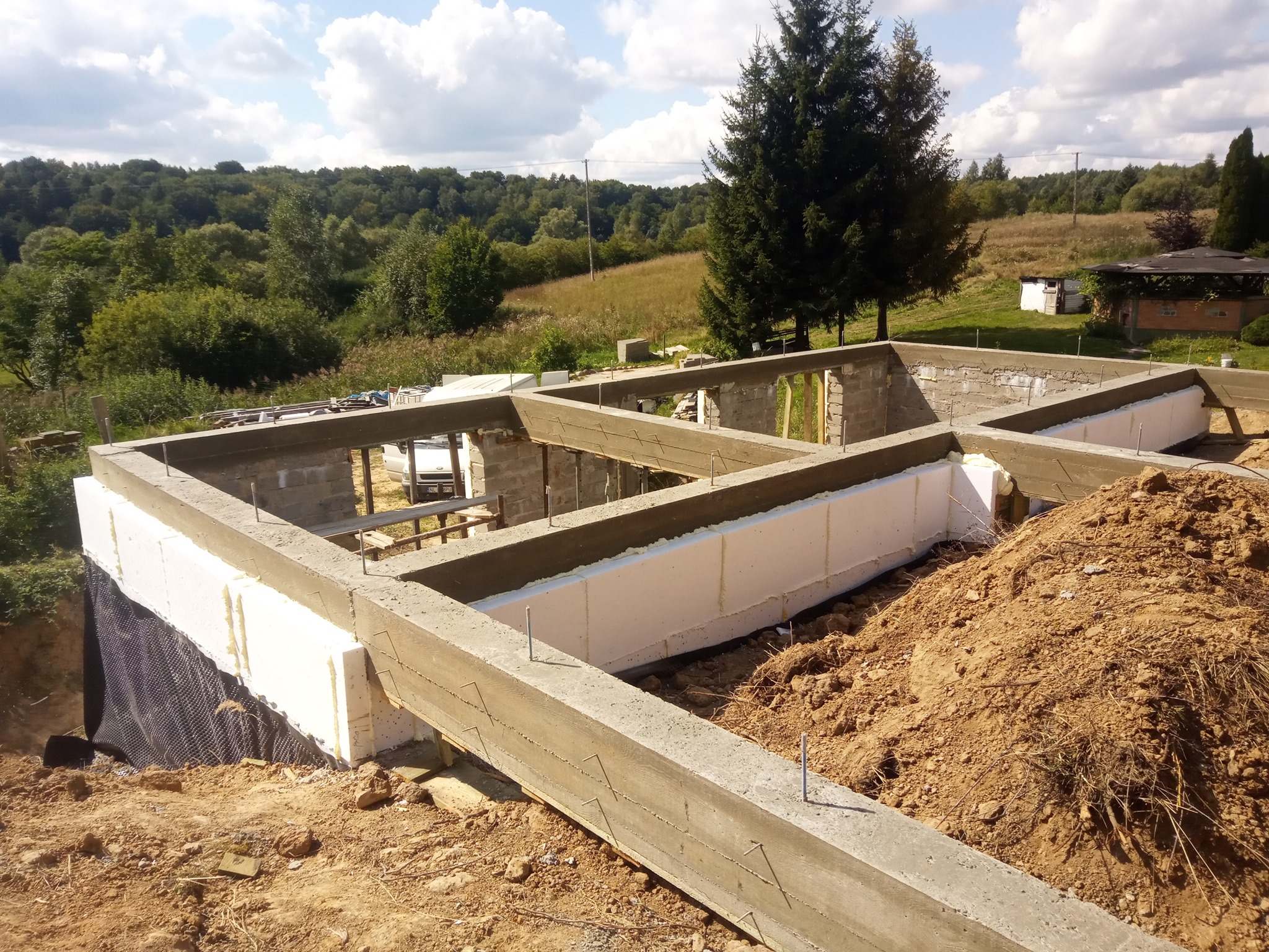 Wykonanie wieńca oraz podciągów piwnicy na której powstanie dom z bala. Zlecenie dość nie typowe, ponieważ dom został usytuowany w istniejącej skarpie. Z niecierpliwością czekamy na efekt finalny