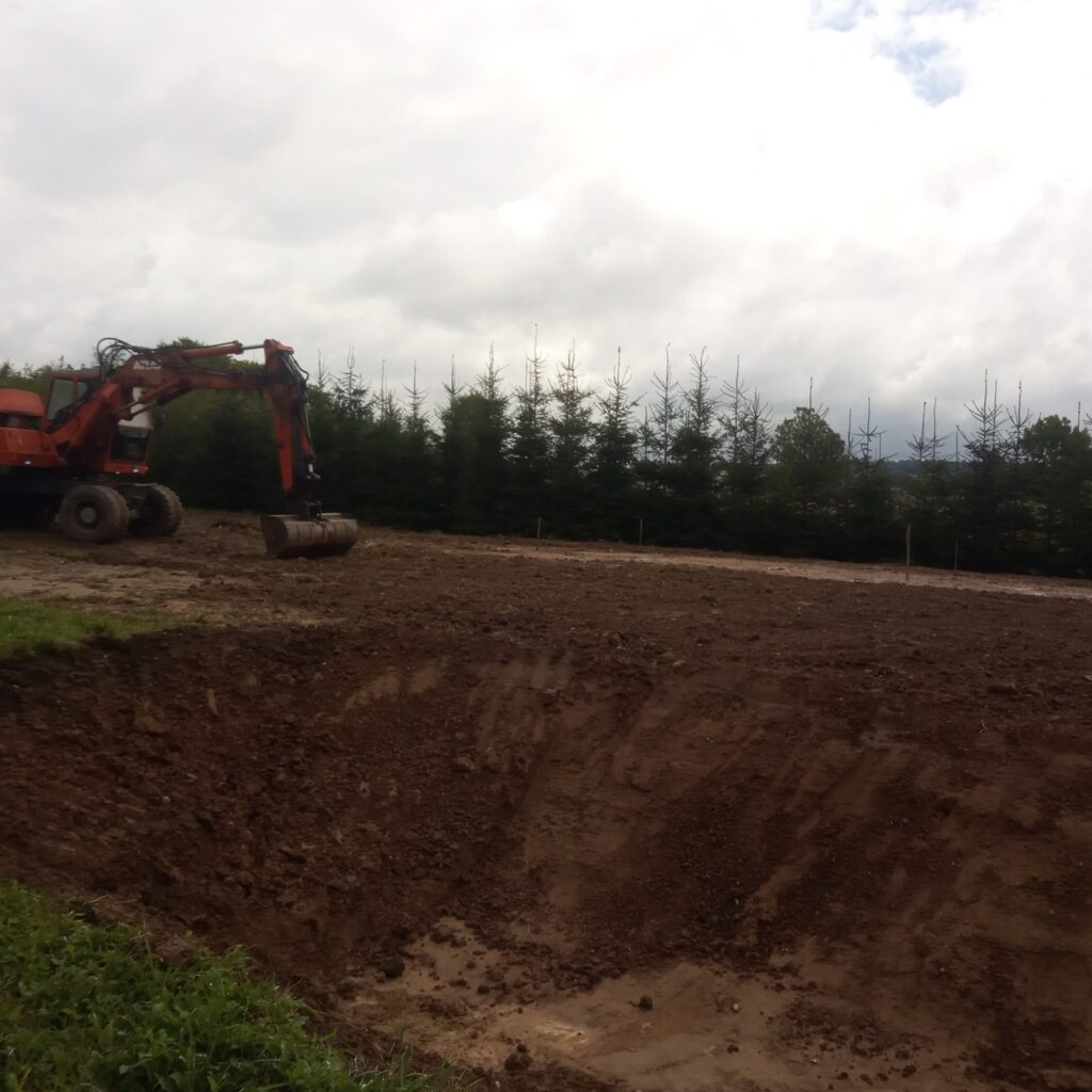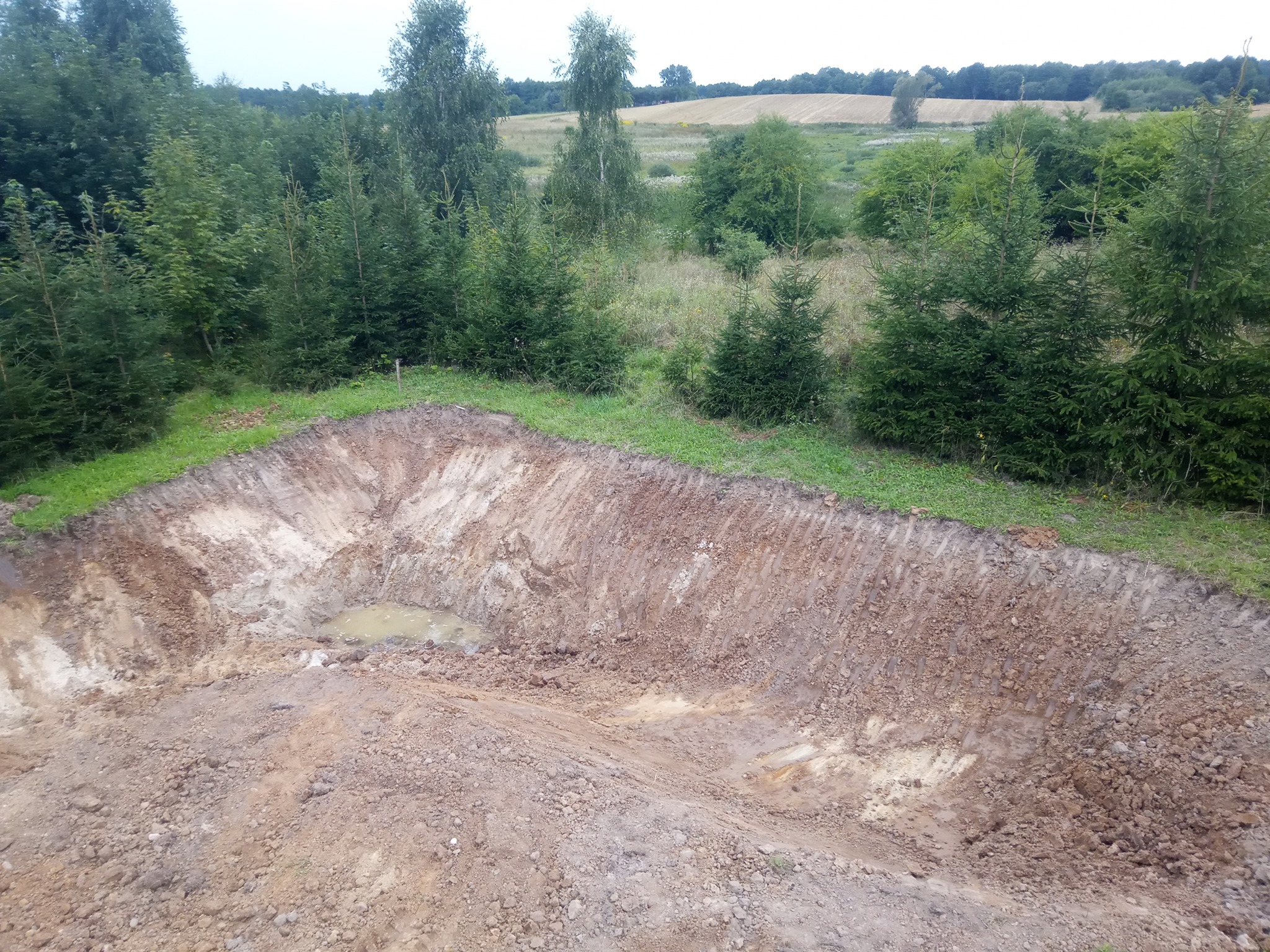 Wykopanie stawu wraz z rozplantowaniem urobku i niwelacją terenu
