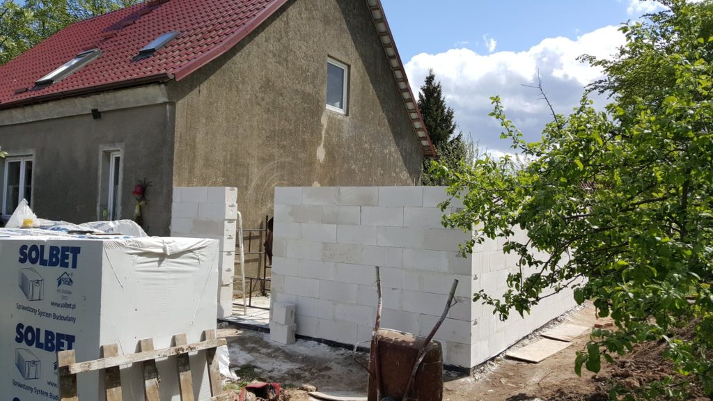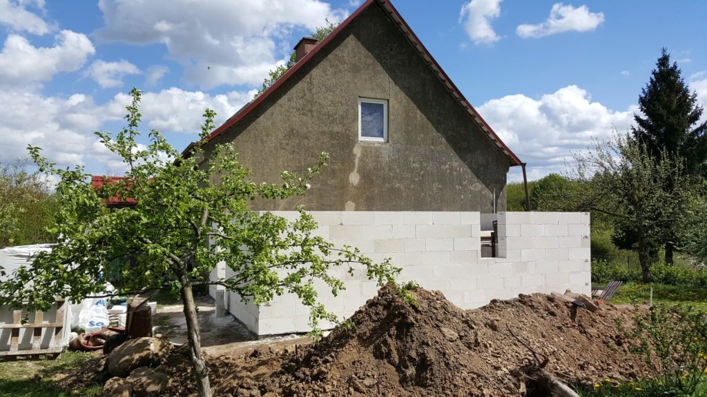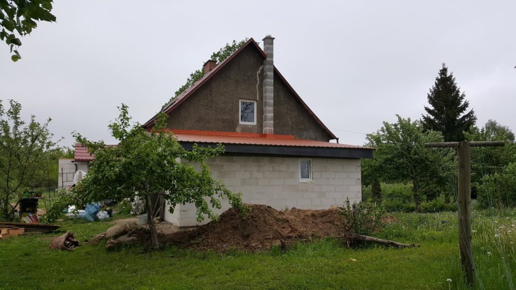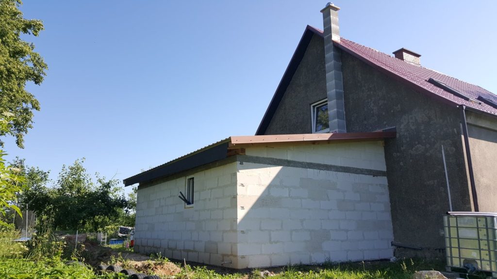 Projekt Czyste Powietrze. Wymiana pieca, wymagała dodatkowego miejsca i nowego komina. Decyzja padła na dostawienie kotłowni obok domu oraz nowy komin systemowy.
